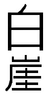 The top one is the Japanese kanji (logogram) for shiroi which means white and the bottom one is gake for cliff.